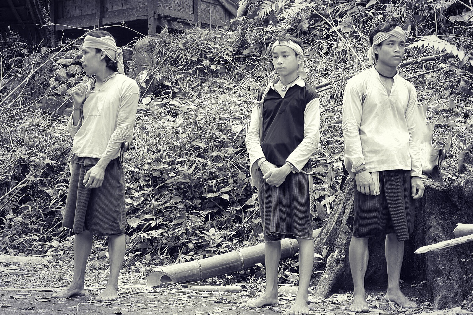 •Menggunakan pakaian bawahan kain tenun berwarna hitam, atasan putih/hitam, dan ikat kepala warna putih.