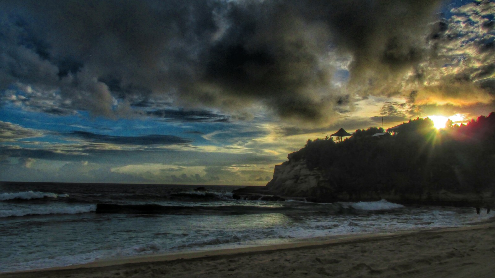 Pantai Klayar, Terdapat di Kabupaten Pacitan Jawa Timur. Pantai yang termasuk golongan pantai palung ini berpasir putih dan terdapat keunikan yang luar biasa dan disebut seruling samudra, selain itu sunset yang di miliki pantai ini juga sangat menawan seperti yang terlihat pada foto ini.