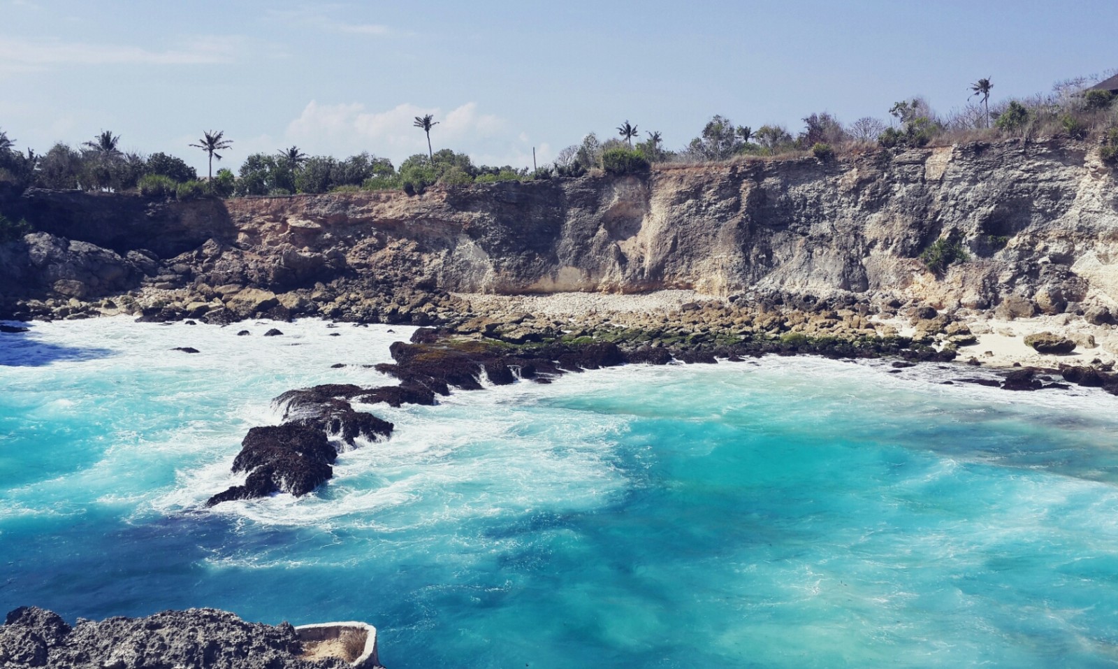 Blue lagoon, nusa ceningan. Terletak di pulau kecil dekat bali, tidak cukup dengan kapal ke pulau ini, kita harus sewa motor menyebrangi jembatan kayu, naik terus, dilanjutkan dengan jalan kaki bentar. Fiuh, dapat view dari atas kayak gini ditemani angin tidak sepoi-sepoi, betah lama de.