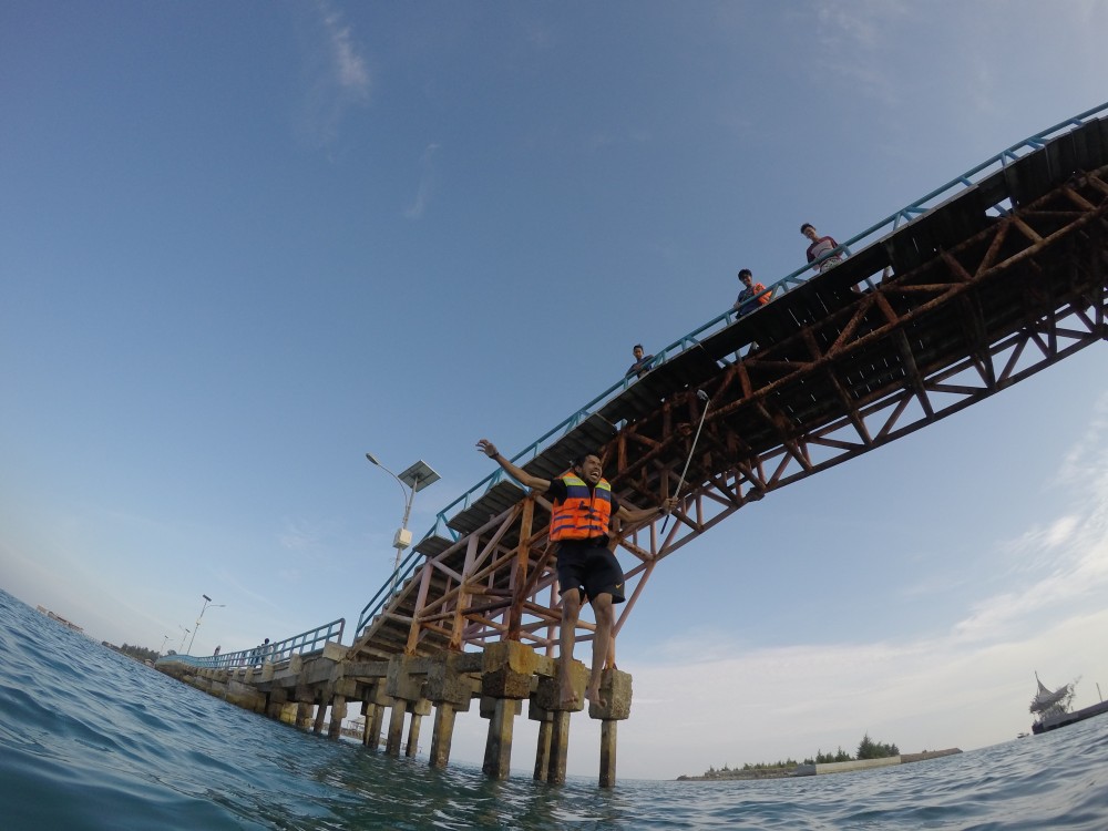 menguji adrenalin merupakan suatu aktivitas yang menarik untuk di lakukan, seperti aktivitas yang diakukan sahabat saya, Iqbal, dia melompat dari jembatan penyeberangan antar pulau setinggi kurang lebih 7 meter! waw! seru bukan?! kalian pun para travellers dapat menikmati sendiri keseruan tersebut dengan mengunjungi "jembatan cinta" yang terletang di pulau tidung kepulauan seribu, jembatan cinta namanya,hhmm cukup menarik, dinamai jembatan cinta oleh penduduk lokal mungkin karena jembatan tersebut sangat pas untuk di kunjungi pada saat senja oleh para couple yang mencari usasana romantis, dengan suasana senja sembari menikmati indahnya sunset dan deruan ombak di sore hari.