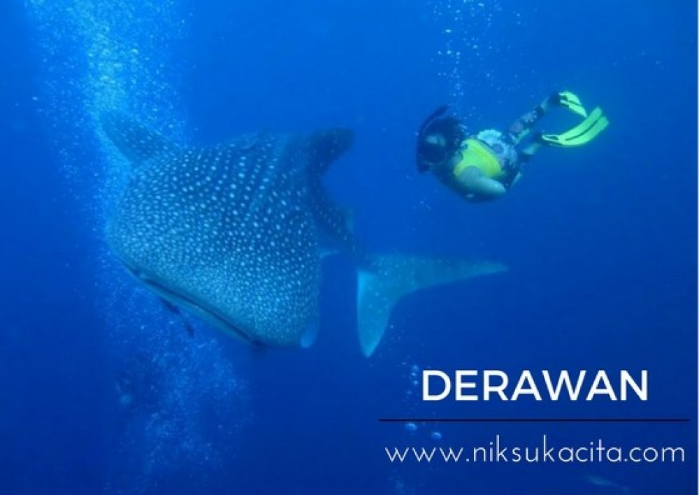 Menikmati bawah laut Derawan dengan bermain dengan si.Ganteng while shark.