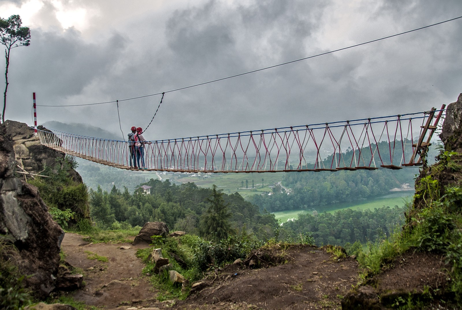 Jembatan Merah Putih Terletak di Kawasan Telaga Warna Dieng. dari Jembatan ini kita bisa menyaksikan berjuta warna keindahan Telaga Warna dan panorama alam disekitarnya. Jembatan ini dirancang dengan keamanan yang sangat memadai bahkan untuk anak-anak sekalipun. dan jangan sampai ketinggalan untuk mengunjungi dan mencoba menikmati dieng dari Jembatan Merah Putih.
