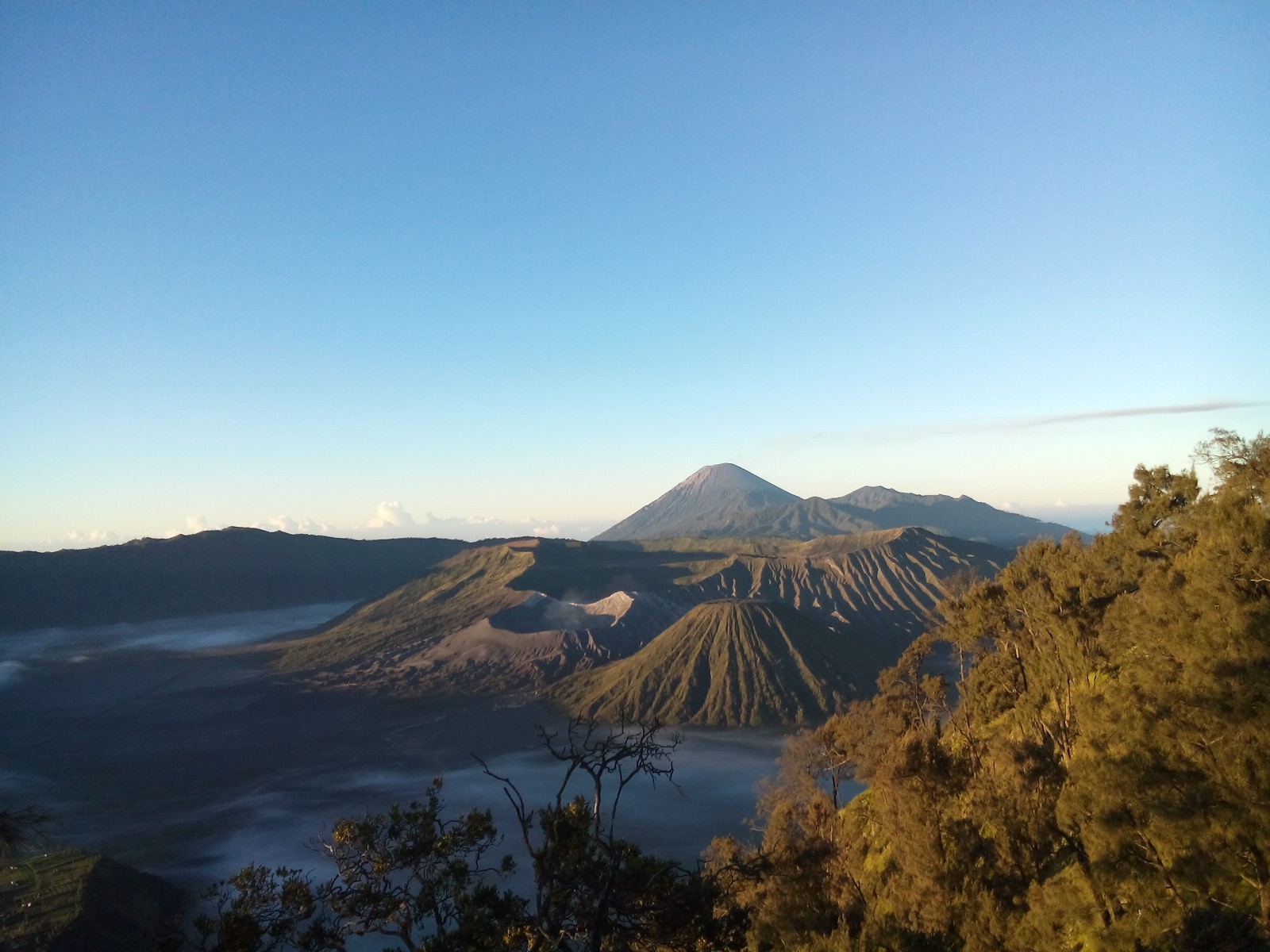 Pemandangan gunung Batok & gunung Bromo di pagi hari, diambil dari Pananjakan 1, tempat dimana kita bisa melihat matahari terbit