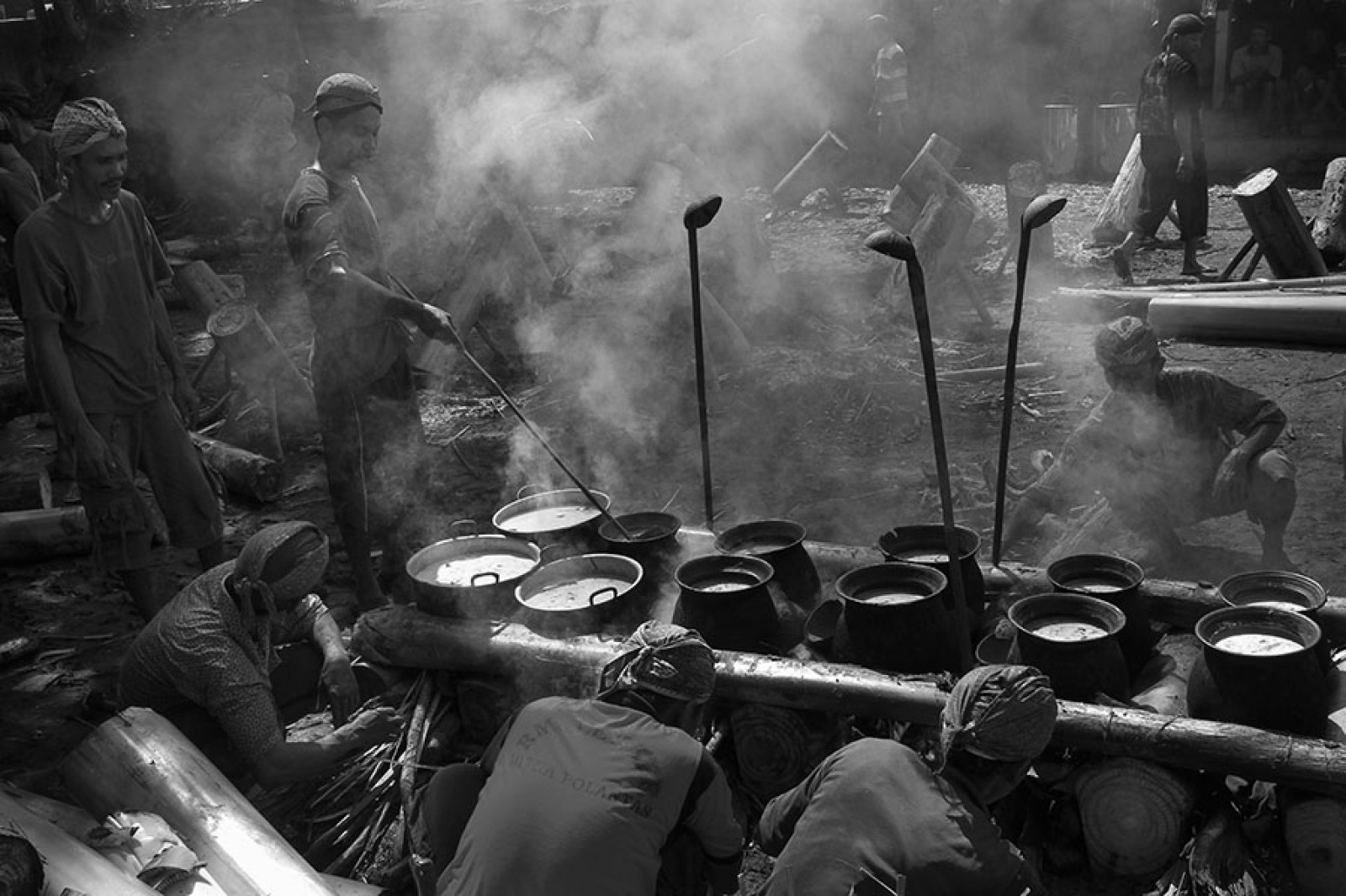 Para kaum pria pengikut Bonokeling saat memiliki tugas baru,yakni menjadi juru masak pada acara sadranan