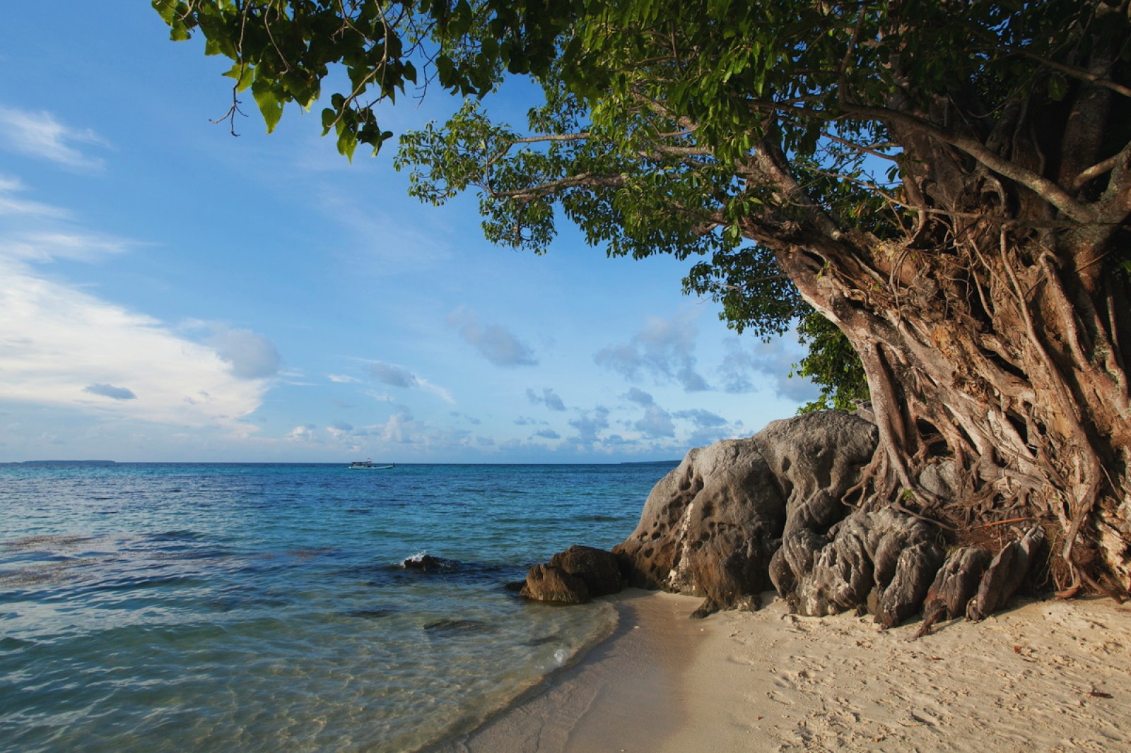 Salah satu sudut di Tanjung Gelam, Karimun Jawa ini merupakan spot eksotis yang terdiri dari batu dan pohon besar ditepi pantai, seakan menceritakan tentang waktu yang telah berjalan di pantai ini dan kecantikan alamnya yang masih alami