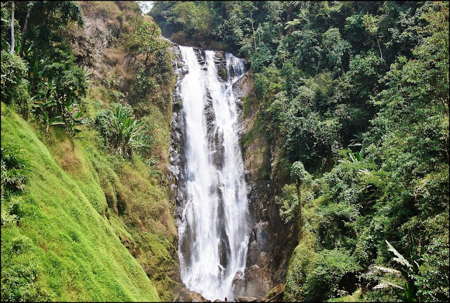 Air yang mengallir di air terjun ini bersumber dari mata air yang tak pernah kering di celah bukit barisan. Air terjun ini dikelilingi pepohonan hijau dan bebatuan sungai yang menyatu membentuk keselarasan pemandangan alam yang memukau. Dengan keindahan alam seperti itu, tidaklah salah jika objek wisata ini menjadi salah satu objek wisata unggulan Kabupaten Muara Enim.