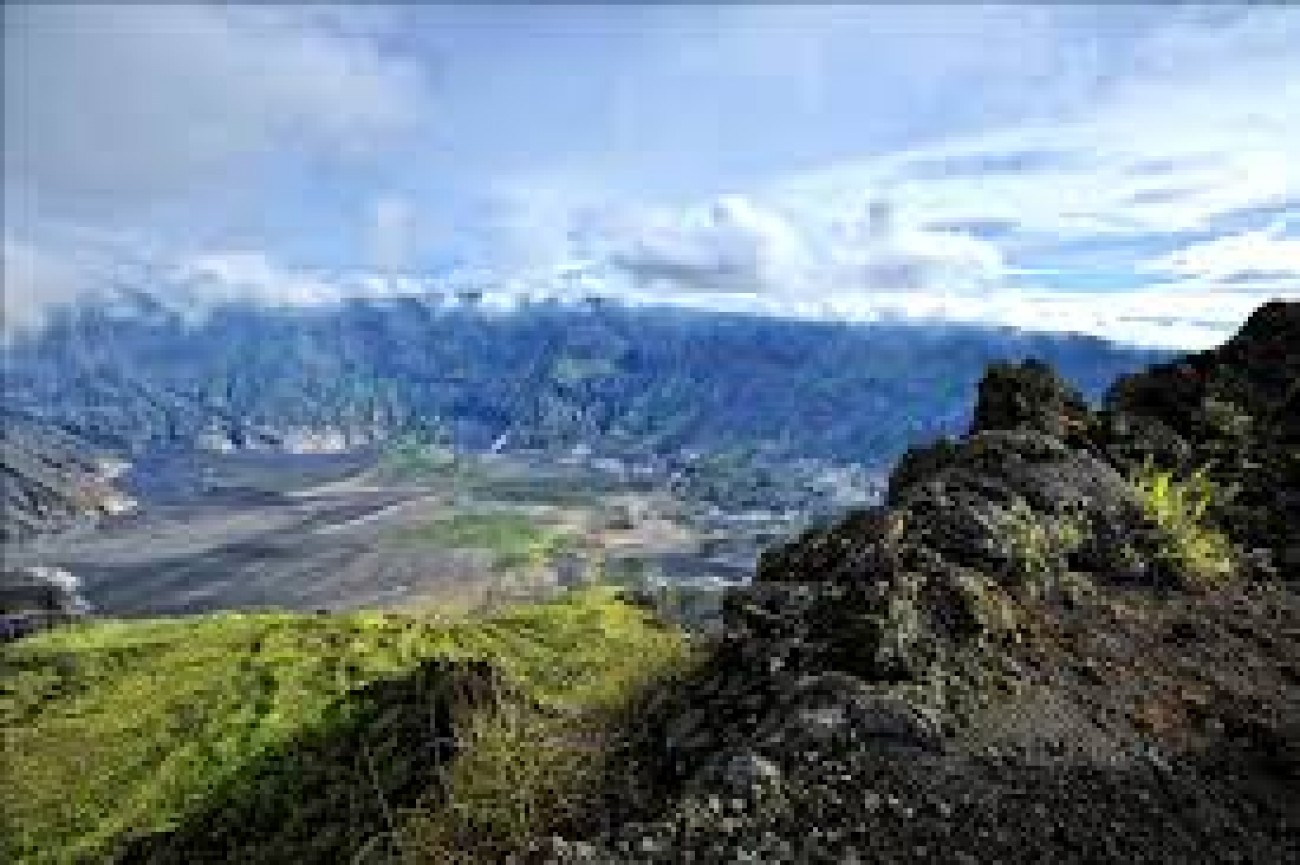 hamparan padang pasir. Sesampainya di Puncak Gunung Tambora di ketinggian 2.851 mdpl traveler bisa menikmati pemandangan yang sangat indah dan kawah yang berwarna hijau dibawahnya.